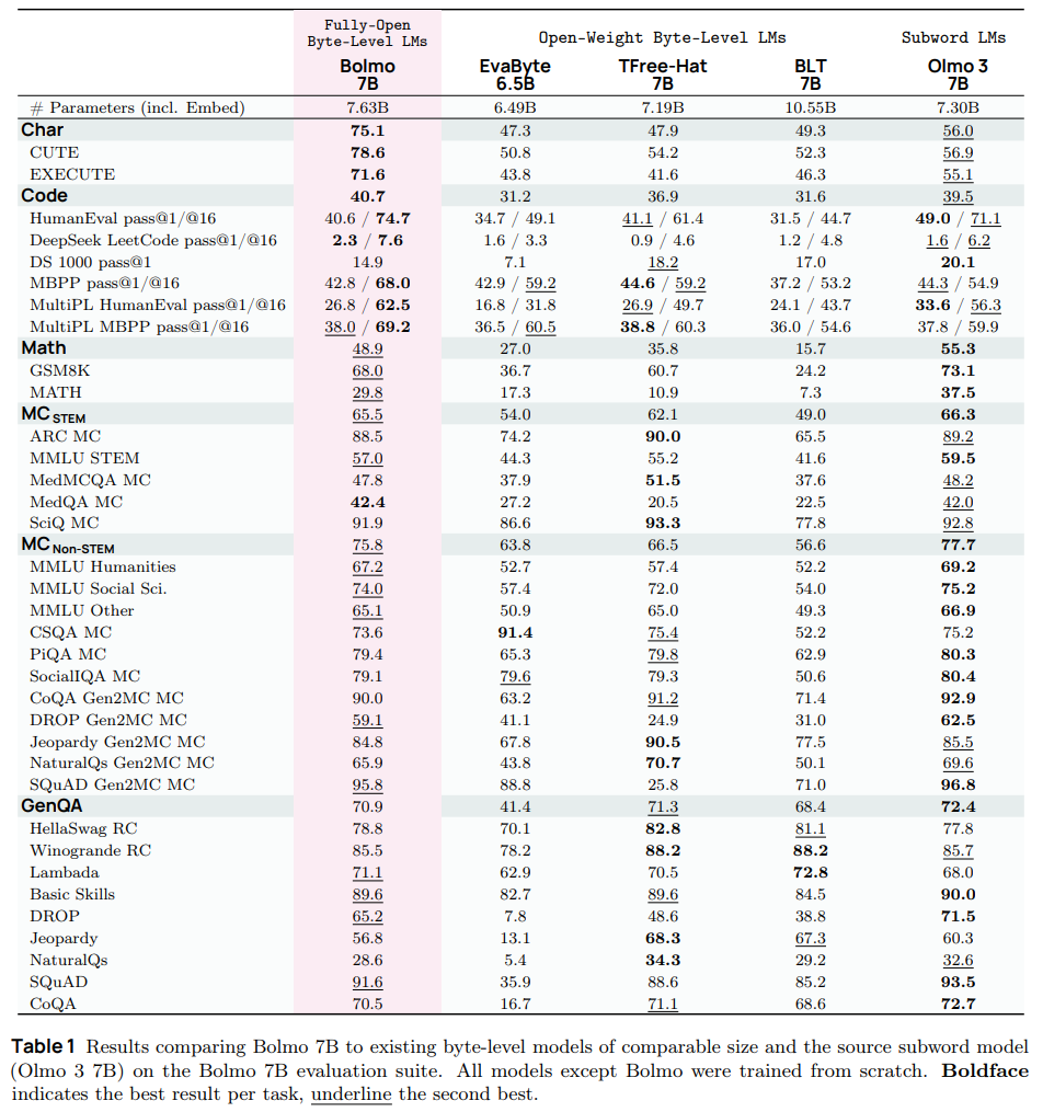 Model: https://huggingface.co/allenai/Bolmo-7B