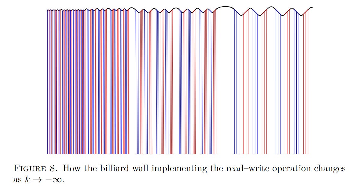 The construction faces limits regarding physical realizability, primarily due to the “Zeno” nature of the encoding. The wall segments for large k become smaller than the Planck length, and the initial condition requires defining a real number with infinite exact ternary digits. However, the authors argue that this specific construction remains more physically plausible than alternative encodings. They note that while previous theoretical attempts required physically impossible operations (like shifting the entire tape instantaneously), this method relies only on the focusing power of billiard dynamics to handle the complexity.