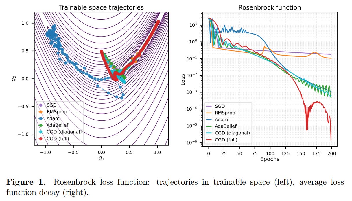 WHY it matters? This work shifts the paradigm of optimizer design from a collection of effective but disconnected heuristics to a principled, unified theory grounded in geometry. It reveals that popular optimizers are essentially simplified versions of a more general dynamic, often discarding valuable information about gradient correlations. The experimental results show that by incorporating this richer geometric information (via the full covariance matrix), the proposed "full CGD" optimizer achieves faster, more stable convergence and a lower final loss than its predecessors on benchmark tasks. While computational scalability remains a challenge for large models, CGD provides a powerful theoretical lens and a clear path toward developing the next generation of more efficient and robust optimization algorithms.