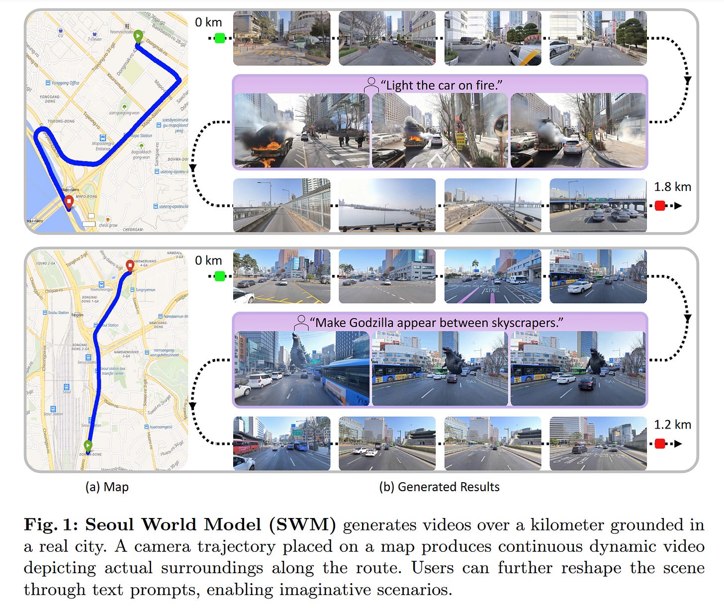 WHAT was done? The paper introduces the Seoul World Model (SWM), a 2-billion parameter city-scale video generation system. Built on a Diffusion Transformer (DiT), SWM uses a geo-indexed retrieval mechanism to anchor its autoregressive video generation to actual, physical street-view data of Seoul, rather than fabricating imagined environments.