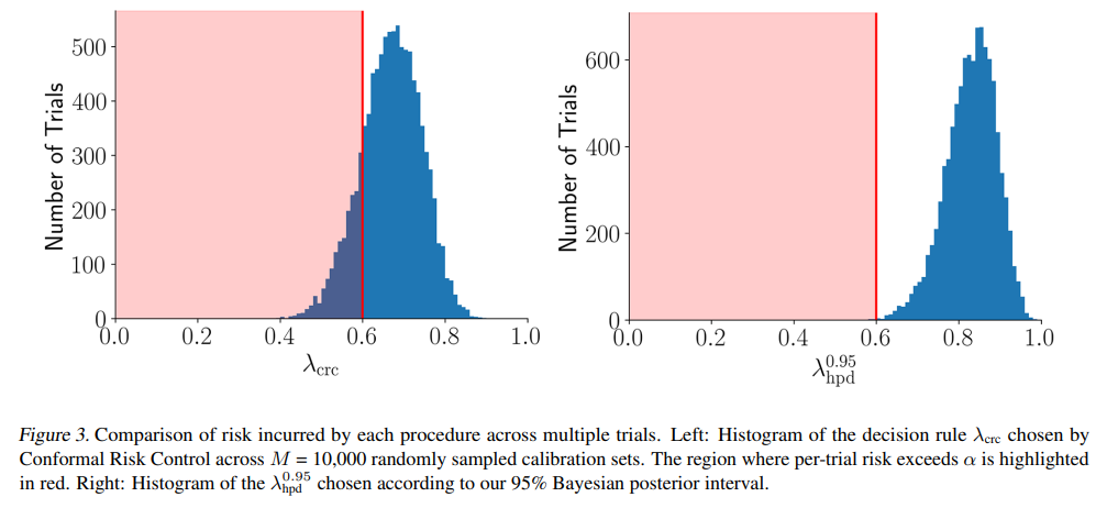 WHY it matters? This approach provides a richer, more practical "data-conditional" guarantee on model performance. While traditional conformal methods offer guarantees that hold on average over many datasets, experiments show they can frequently fail to control risk for individual calibration sets (Table 1, 3). This Bayesian framework yields a more complete view of potential outcomes (Figure 4) and leads to significantly lower failure rates while maintaining competitive (and often smaller) prediction sets. It unifies existing methods like Split Conformal Prediction and Conformal Risk Control as special cases, offering a more robust and interpretable foundation for quantifying uncertainty in high-stakes AI systems.