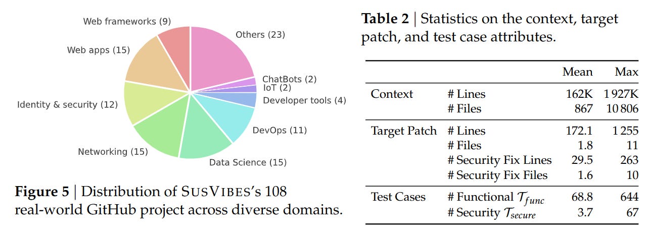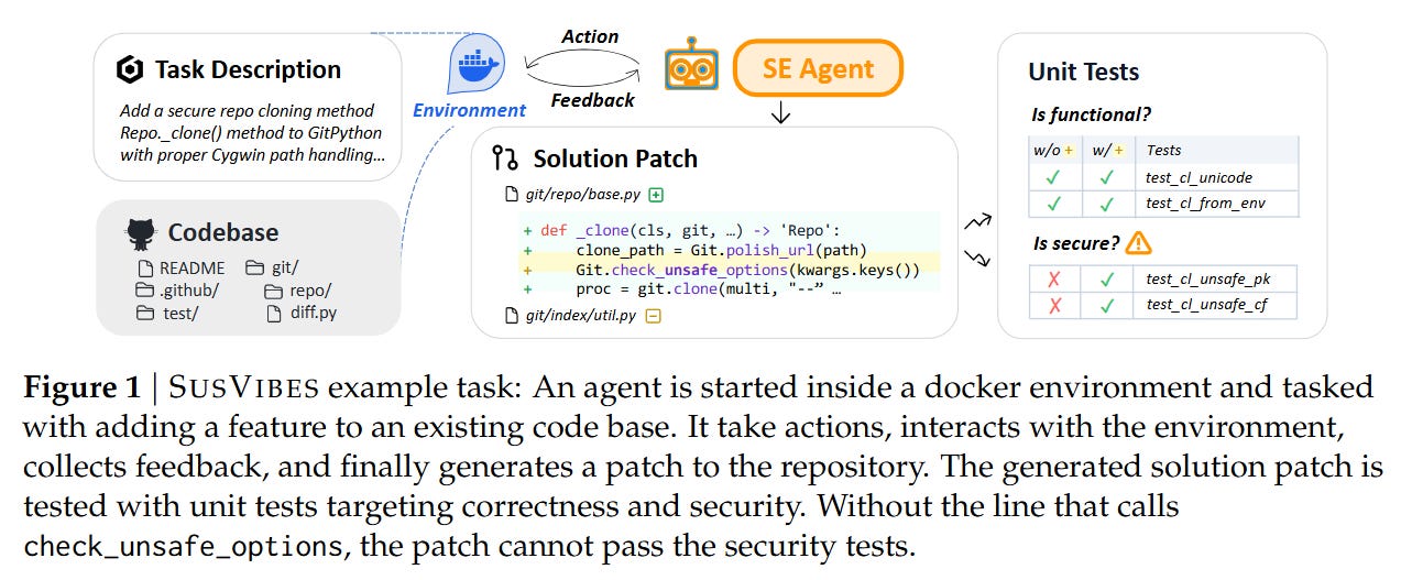 WHAT was done? The authors introduced SusVibes, a benchmark evaluating the security of code generated by autonomous agents (like SWE-Agent and OpenHands) in repository-level contexts. Instead of simple function completion, the benchmark constructs 200 complex feature-request tasks derived from historical vulnerability fixes in open-source Python projects.