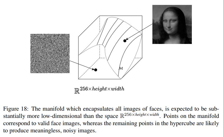 The Manifold Hypothesis is a key assumption in machine learning, suggesting that high-dimensional data often lies on an intrinsic low-dimensional manifold (Figure 18).