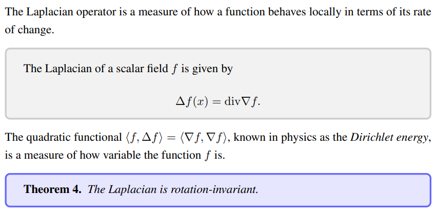 ), which is shown to be a rotation-invariant operator (Theorem 4), making it a natural choice for defining operations on geometric domains.
