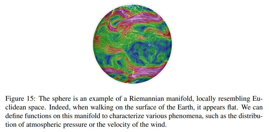 A manifold is a space that, while globally curved, locally resembles flat Euclidean space (Figure 13, 14, 15).