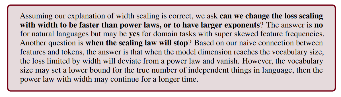 The empirical validity of neural scaling laws—where loss decreases as a power law with model size, data, and compute—is the foundation of modern LLM development, exemplified by the Chinchilla scaling laws. However, the theoretical origin of these laws remains unresolved. Previous mechanistic explanations have largely focused on the resolution-limited regime, where the model attempts to approximate a smooth data manifold. In these frameworks, the scaling exponent α in L∝m−α is predicted to be highly sensitive to the spectral decay of the data distribution. This creates a conflict with empirical reality, where LLM scaling laws appear universally robust across diverse datasets and architectures. The authors address this gap by shifting the focus from manifold approximation to representation learning, investigating how limited width constrains the storage of sparse features.