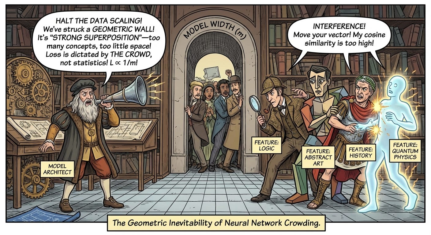 For system architects, this research implies that the widely observed neural scaling laws are not merely a result of statistical learning on power-law data, but a geometric necessity of distributed representations. If L∝1/m is driven by the limits of packing vectors in Euclidean space, then simply adding more data without increasing width faces a hard “interference floor.” The finding that LLMs naturally gravitate toward strong superposition suggests that training stability techniques should be explicitly tuned to maintain this regime, maximizing the efficiency of feature storage within the available model dimension.