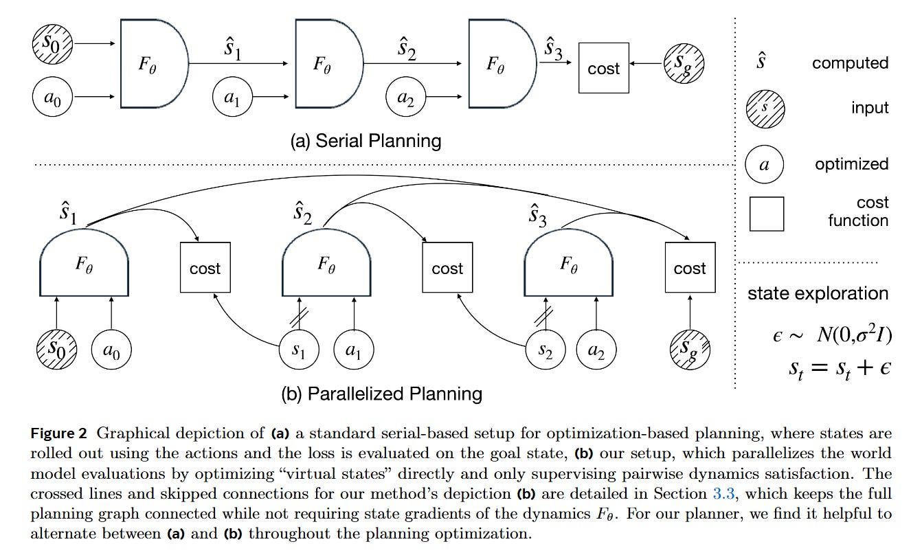 By relaxing the strict equality constraint st+1=Fθ(st,at) into a penalty, the planner can “teleport” through the state space during the early phases of optimization, finding physically valid trajectories that satisfy the dynamics only at convergence. This transforms a deep, sequential computation graph into a shallow, parallel one.