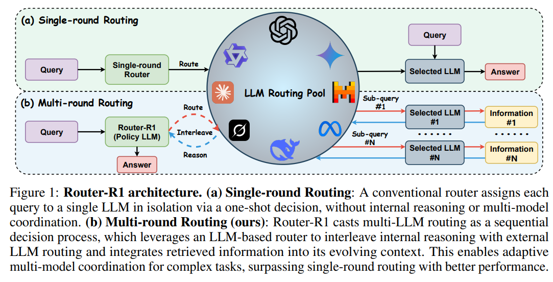 The proliferation of diverse Large Language Models (LLMs) has created a powerful, yet fragmented, ecosystem. To navigate this, LLM routers have emerged to dispatch user queries to the most suitable model. However, they have largely operated on a simple principle: one query, one model. To address the shortcomings of this single-shot approach, the authors of Router-R1 propose a significant paradigm shift from static dispatch to dynamic orchestration.