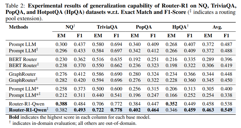Robust Generalization: One of the most compelling findings is Router-R1's ability to generalize. When new, unseen LLMs were added to the routing pool at inference time, Router-R1 was able to effectively leverage their capabilities, maintaining and in some cases even improving its performance without any additional training (Table 2). This highlights the framework's robustness and future-readiness in a rapidly evolving model landscape.