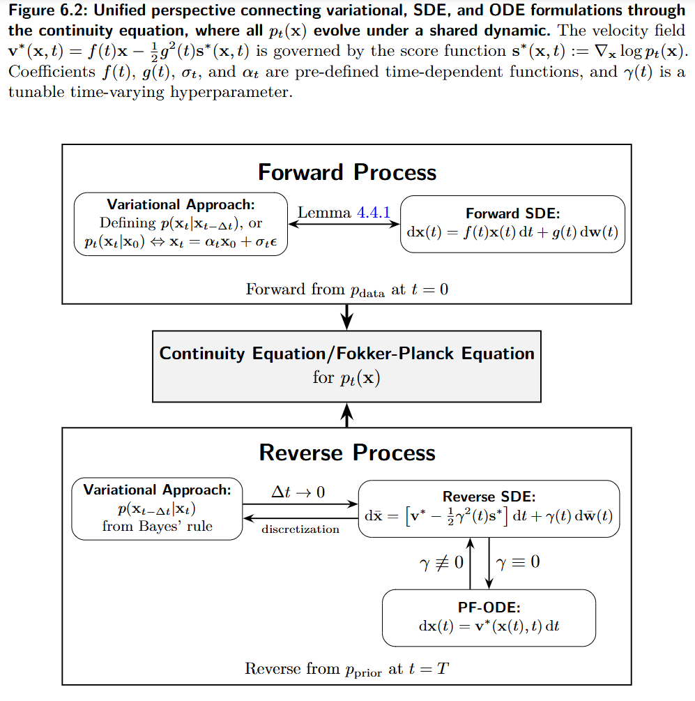 The monograph’s central thesis is that these three paths are not just analogous but mathematically equivalent. They are different lenses for viewing the same underlying generative process: a continuous-time flow governed by a differential equation.