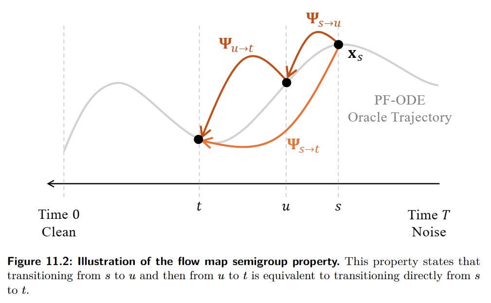 which provides a powerful self-supervisory signal. Intuitively, this allows the model to teach itself by ensuring that a single large jump produces the same result as a sequence of smaller jumps, removing the need for a pre-trained teacher (Figure 11.2).
