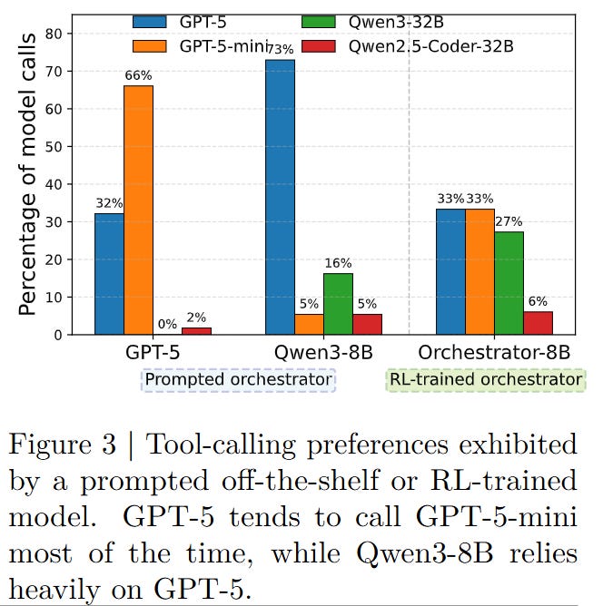 The current paradigm in agentic AI relies heavily on the “God Model” approach, where a single frontier model (like GPT-5 or Claude Opus) is expected to handle everything—from creative writing to Python execution—often defaulting to its internal weights even when external tools would be more efficient. A significant bottleneck identified in this work is the phenomenon of self-enhancement bias. When a large model is prompted to orchestrate tools, it disproportionately favors calling developmentally related variants of itself or the strongest available model, regardless of the task’s actual difficulty. As illustrated in the authors’ pilot study (Figure 3), GPT-5 defaults to calling GPT-5-mini or itself nearly 98% of the time, ignoring cost-effective alternatives. This leads to a system that is accurate but economically ruinous and computationally wasteful. The industry needs a mechanism that decouples the planner from the executor, allowing a cheaper “frontal lobe” to assign work to the most appropriate “muscle.”